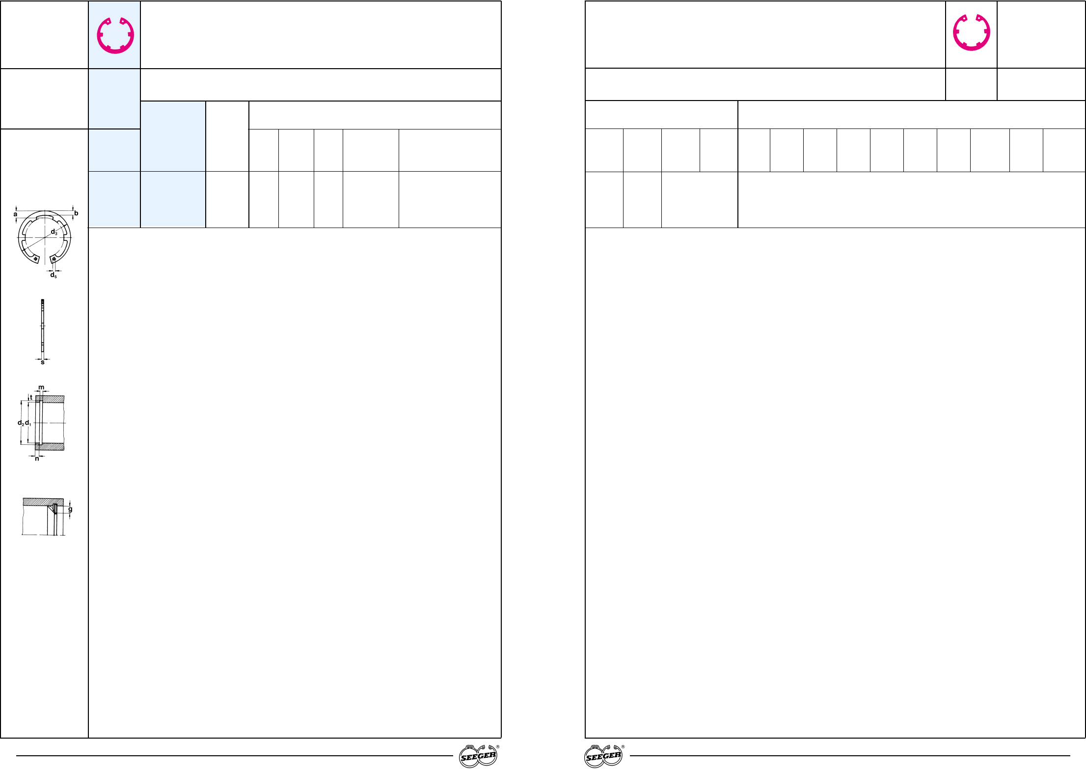 * Siehe Abschnitt 8, Seite 128 · **Die Seeger-K-Ringe entsprechen in den Maßen s, d
