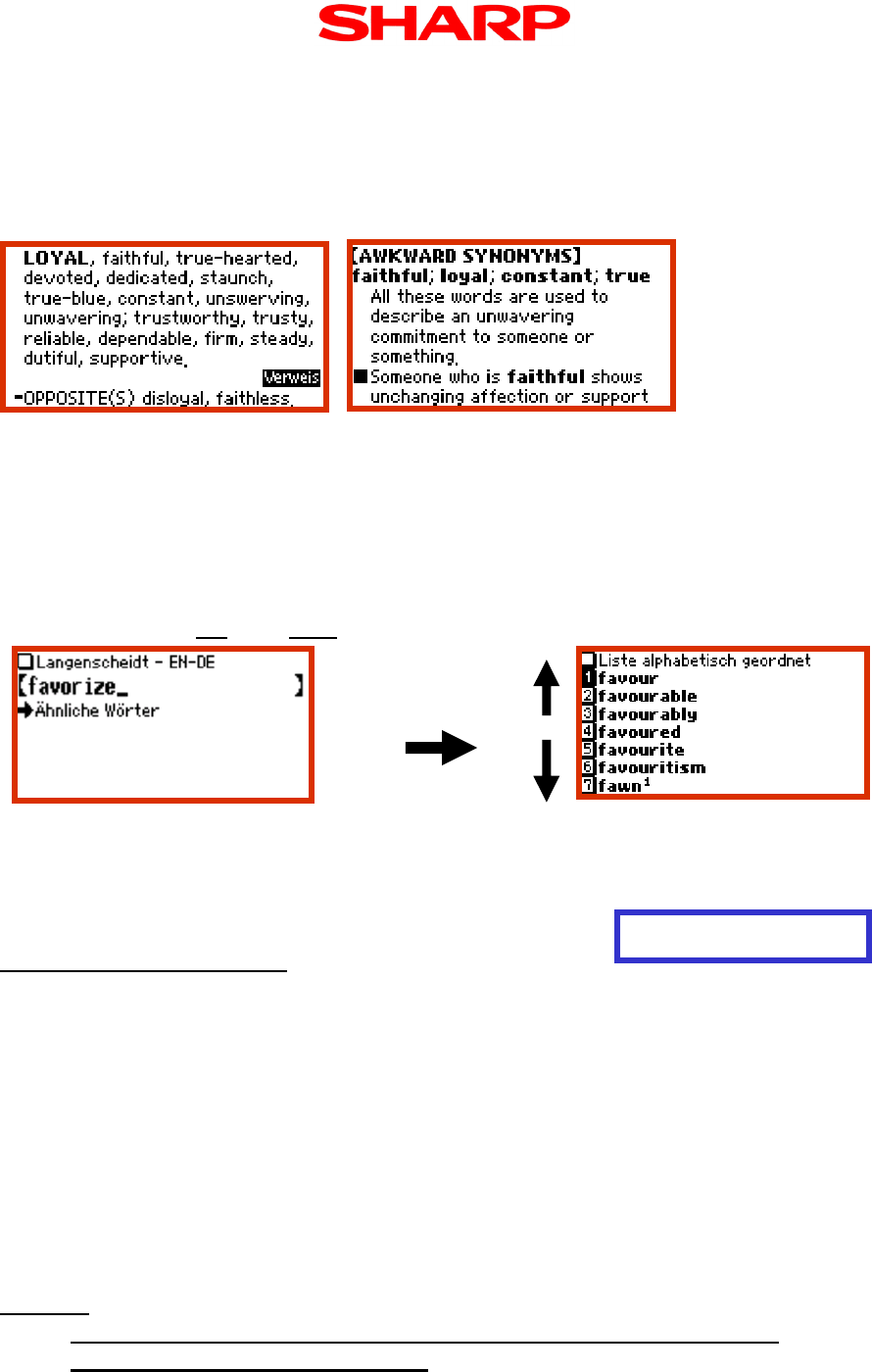 Wird das Stichwort nicht gefunden, bietet PW-E310 eine Liste der vorhandenen