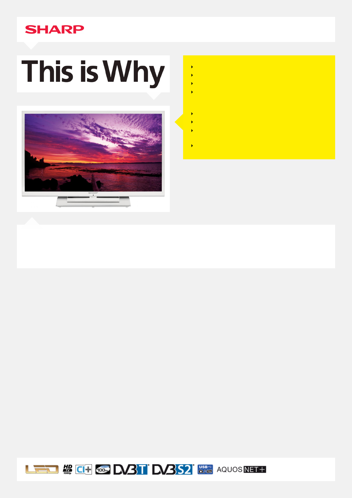 AQUOS NET+ potrai accedere a moltissimi servizi ottimizzati per il tv. Il TV, disponibile nella versione di colore nera o bianca, si