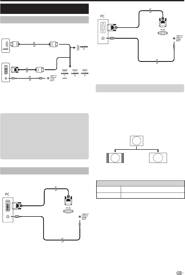 ● When a PC is connected to the TV with a DVI