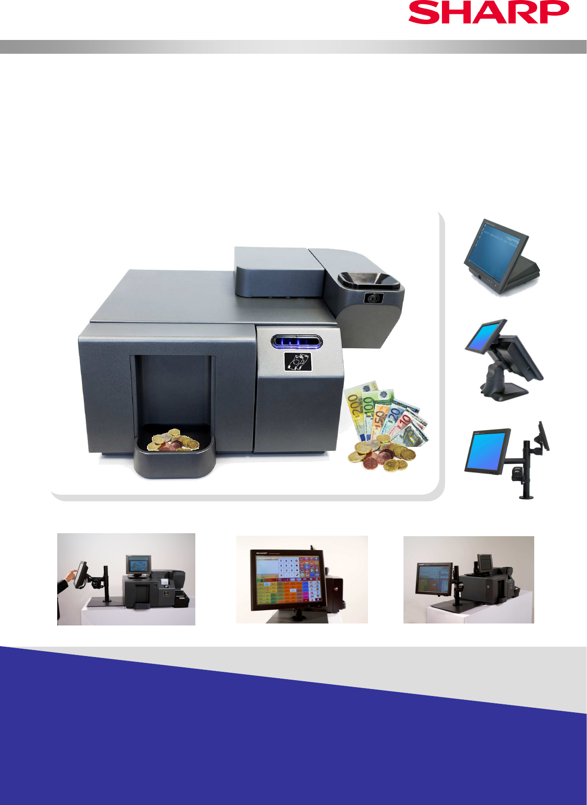 €CASH Solution compacte, ergonomique 63.5 cm 55 cm 28.5 cm 36.5 cm Billets Pièces Rendu Monnaie Hygiène et sécurité Les employés ne manipulent plus l’